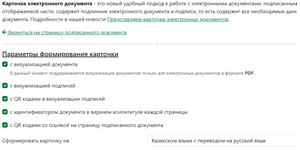 Выберите язык на котором будет формироваться карточка электронного документа и проверьте другие параметры.