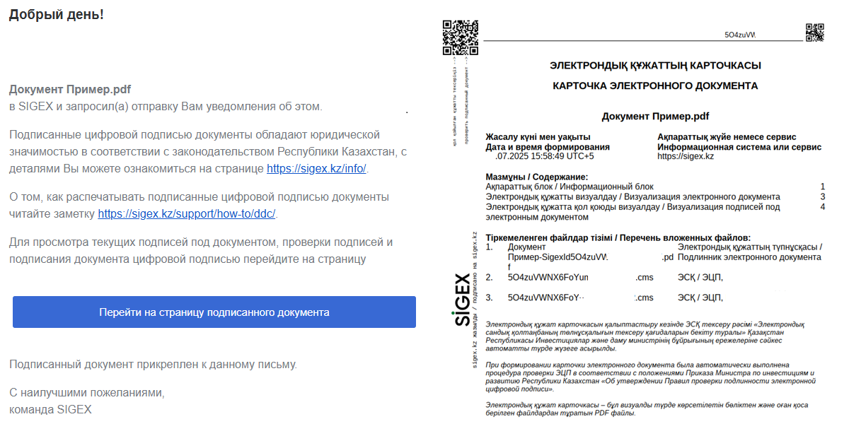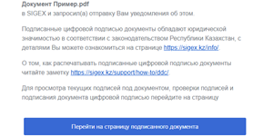 Откройте полученное по электронной почте уведомление от SIGEX, и нажмите на кнопку «Перейти на страницу подписанного документа».