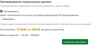 В настройках организации выберите раздел «Архивирование подписанных данных».